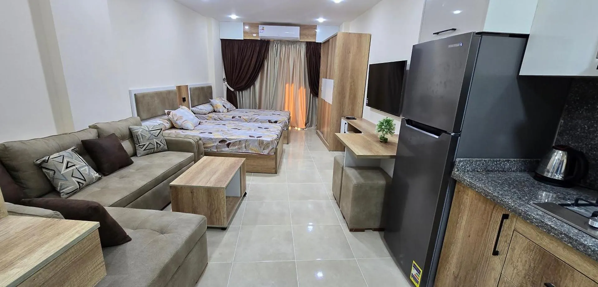 Апартаменты обеспечивают комфортное пребывание, предлагая электрочайник, холодильник и кухонную утварь. Рядом с Tiba Golden Resort Hurghada хорошая транспортная развязка. Например, примерно в 10 минутах ходьбы есть автобусная станция Go.